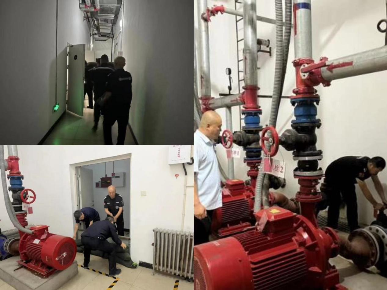 演練現場模擬6#樓因持續暴雨導致地下變電站出現水情告急的情況。中央監控值班室發現險情后,迅速上報防汛應急小組并立即按照應急預案開展救援。應急小組用防汛沙袋在地下水泵房、變電室等重點部位砌起防汛堤壩,阻止雨水漫入,同時利用主排水泵、吸水機等設備迅速排澇,在搶險人員的共同努力下,使險情迅速得到了控制。