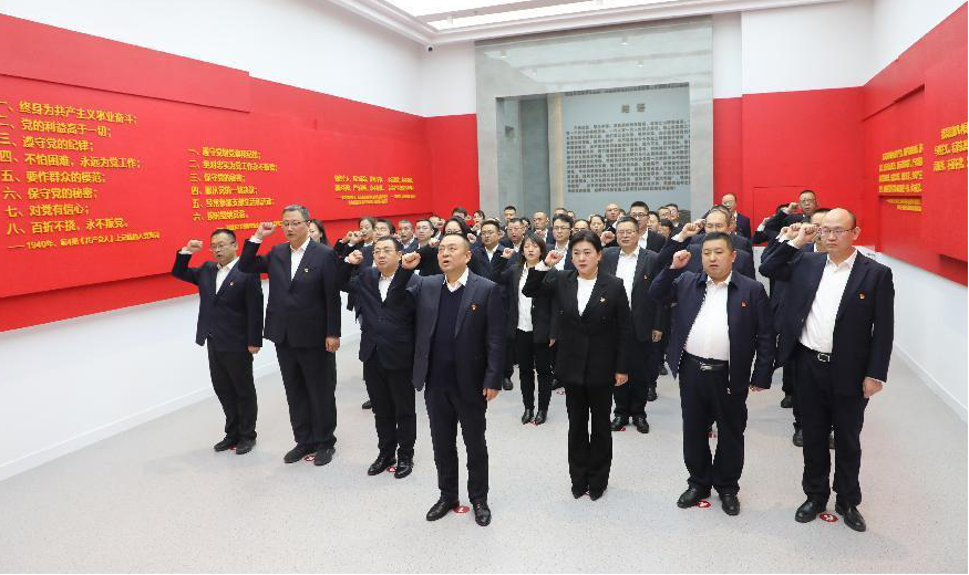 參觀結束后,全體人員在宣誓廳重溫了入黨誓詞。