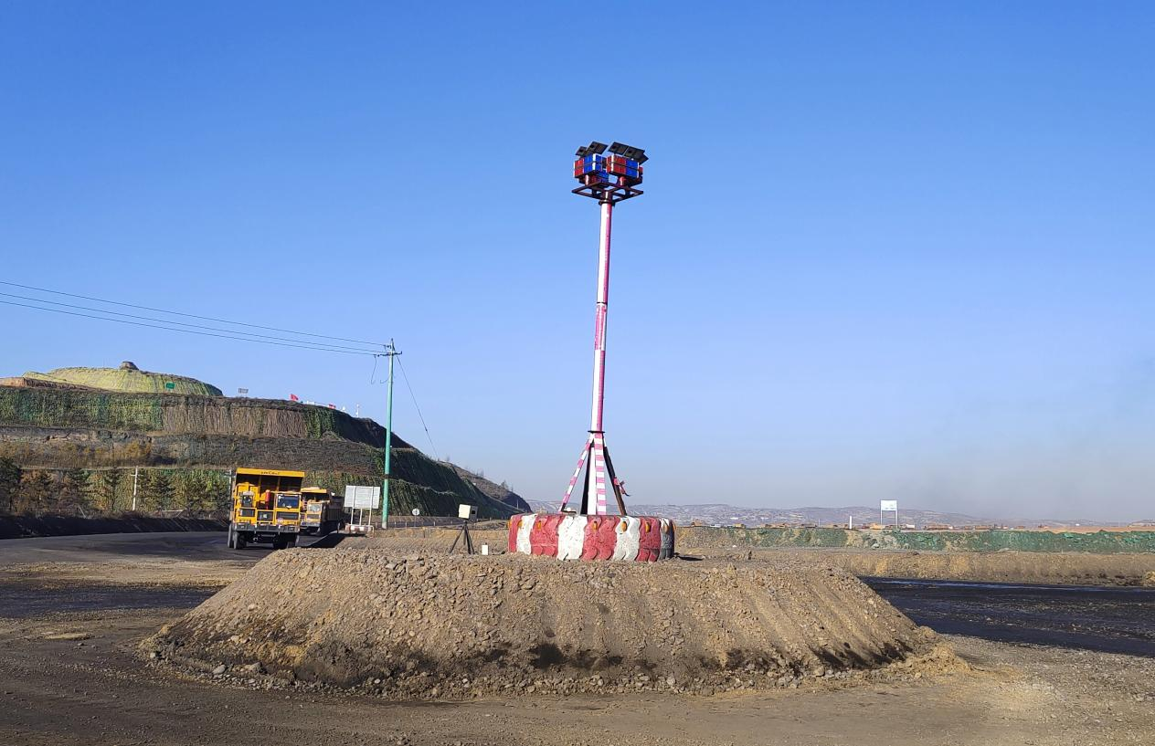 在建設環島的過程中,河曲露天煤業秉承著“精益生產,降本增效”的思想,盡量利用已有物資或者廢棄物資來進行建設,絕不多浪費公司一絲一毫的寶貴資金。利用生產現場剝離的砂石物料來建立環島基礎底座,利用80噸灑水車的廢棄輪胎和爆閃燈來焊接安全警示燈,確保環島在晚上也可以起到應有車輛分流效果。