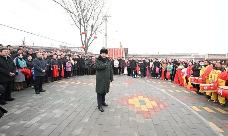 村文化廣場上十分熱鬧,村民們打起威風鑼鼓、扭起秧歌歡慶佳節。看到總書記來了,人們高興地歡呼起來。習近平對鄉親們說,我們黨的根本宗旨就是為人民群眾辦好事,為人民群眾幸福生活拼搏、奉獻、服務。我們如期打贏了脫貧攻堅戰,如期實現了全面建成小康社會目標,現在踏上了全面建設社會主義現代化國家新征程。建設現代化國家離不開農業農村現代化,要繼續鞏固脫貧攻堅成果,扎實推進鄉村振興,讓群眾生活更上一層樓,在推進農業農村現代化中越走越有奔頭。